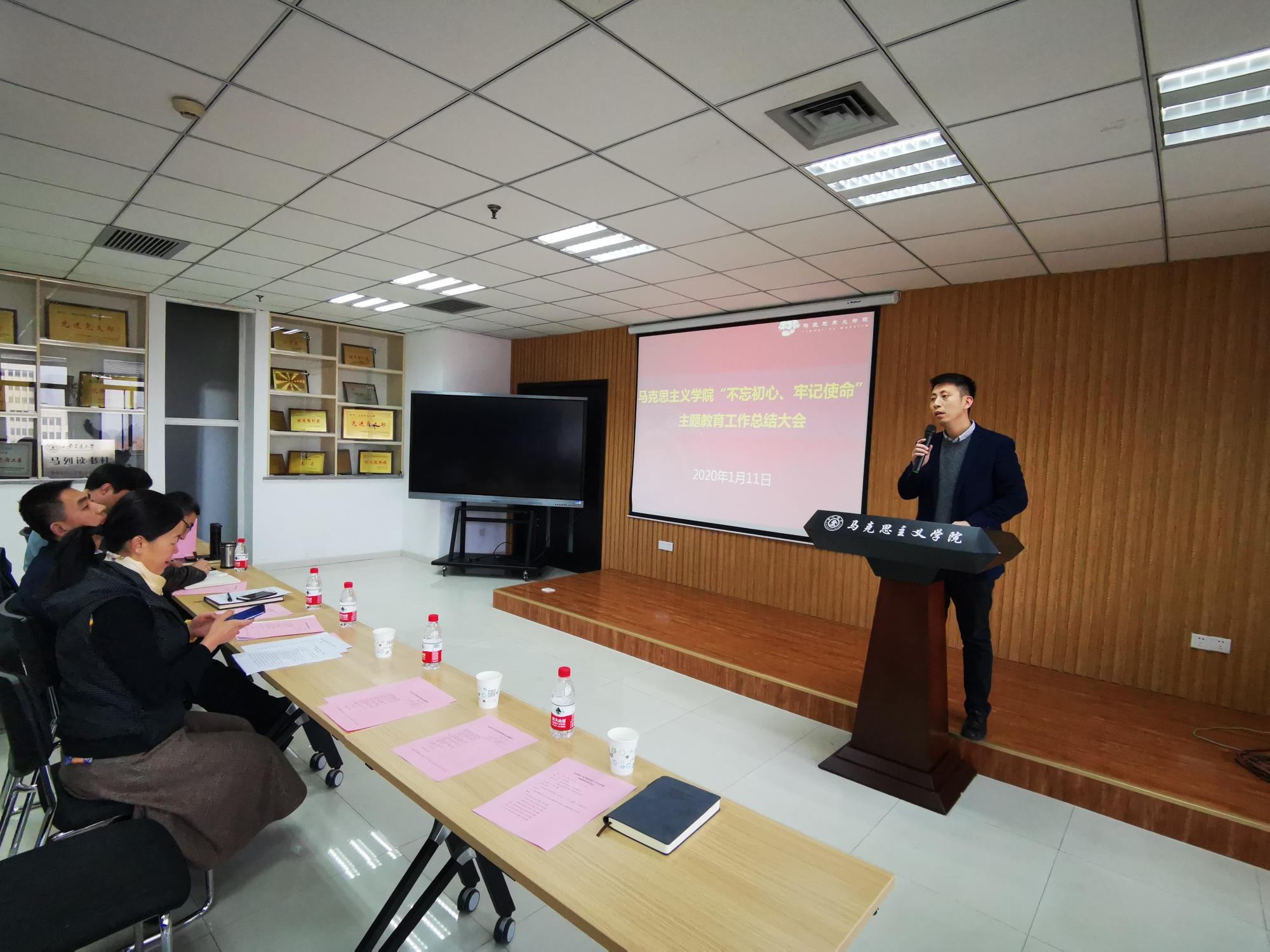 学院党委书记苏玉波围绕着主题教育开展以来的进展情况、特色做法和取得的成效、存在问题以及下一步工作计划对本学期主题教育工作进行了全面、细致的汇报。