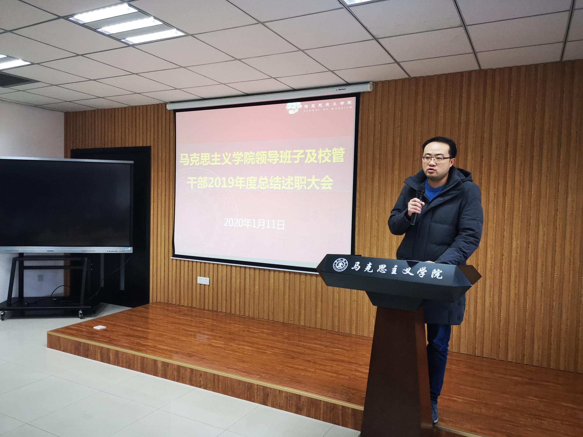 最后,学院党委书记苏玉波在讲话中指出,在学院所有老师的拼搏奋进下,学院在2019年取得了丰硕的成绩,令人十分振奋。2020年将迎来第五轮学科评估,面对机遇和挑战,要做好充分的准备,以奋不顾身的拼搏姿态,鼓满风帆,奋力前进,实现学科的新发展,谱写“马院新篇章”。