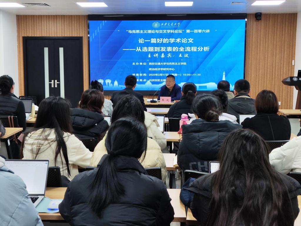 2025年2月17日上午,“马克思主义理论与交叉学科论坛”第一百零六讲在兴庆校区主E-505会议室举行。山东社会科学院《东岳论丛》编辑部主编王波研究员应政治经济学研究中心主任刘儒教授邀请,为294俄罗斯专享会师生作题为“论一篇好的学术论文——从选题到发表的全流程分析”的学术报告。本次讲座由294俄罗斯专享会副院长梁军教授主持。